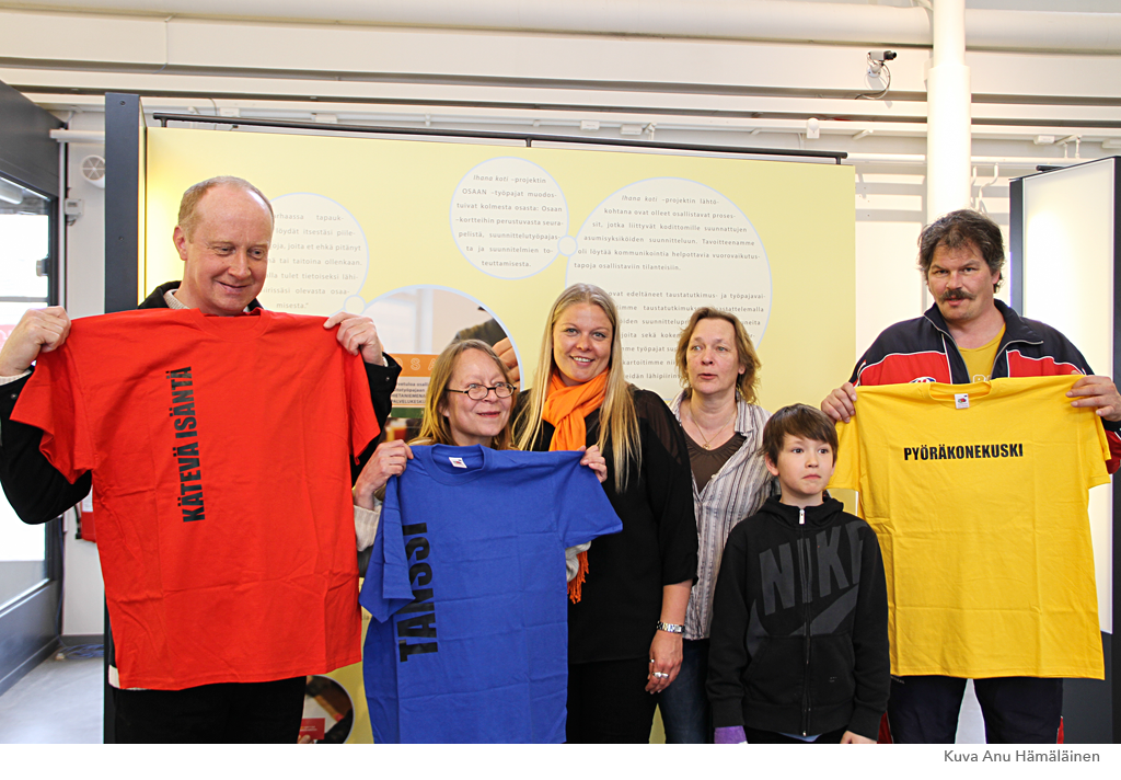 Hietaniemenkadun palvelukeskuksen porukkaa paitojen kanssa.