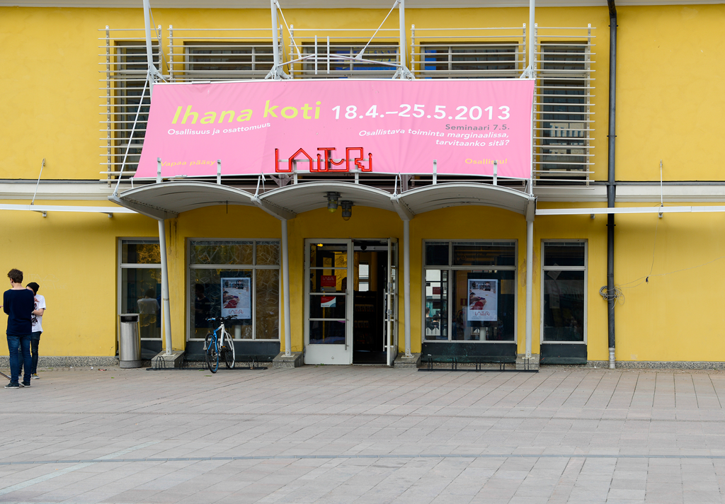 Ihana koti päättyi näyttelyyn Helsingin kaupunkisuunnitteluviraston info- ja näyttelytila Laiturissa, joka valikoitui näyttelytilaksi kontekstisidonnaisuutensa vuoksi. Laituri esittelee kaupunkisuunnitteluun, rakentamiseen, asumiseen ja ylipäätään Helsingin tulevaisuuteen liittyviä visioita.