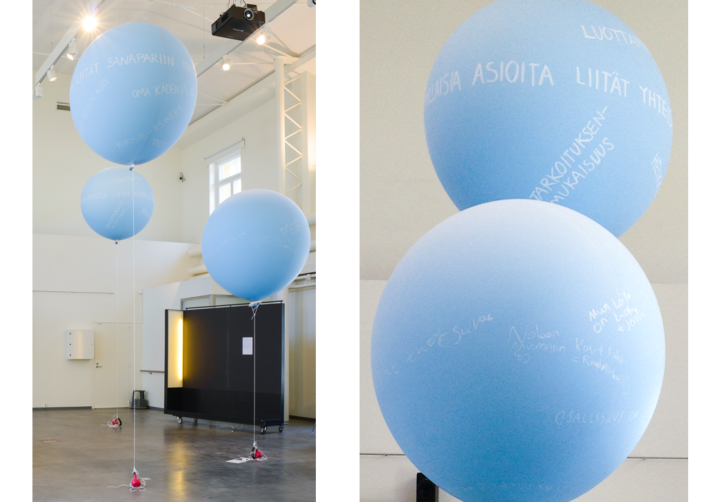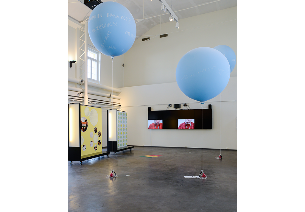Näyttelyssä oli myös mahdollisuus osallistumiselle. Ilmapalloista koostuvassa installaatiossa esitettiin kysymykset Mitä ajatuksia liität sanapariin Ihana koti? ja Millaisia asioita liität yhteisöön? Näyttelyvierailla oli mahdollisuus jättää oma vastauksensa installaatioon.