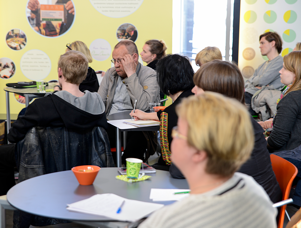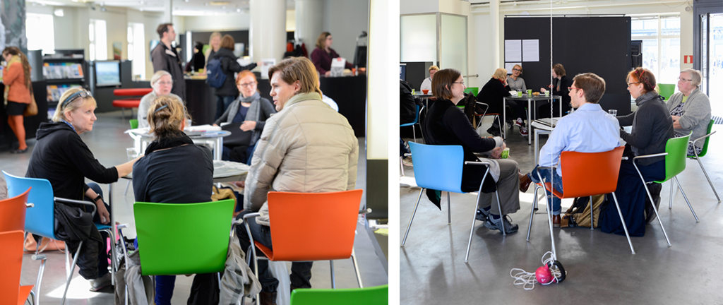 Seminaarin paneelikeskustelun aluksi osallistujat muodostivat ryhmissä kysymyksiä panelisteille.