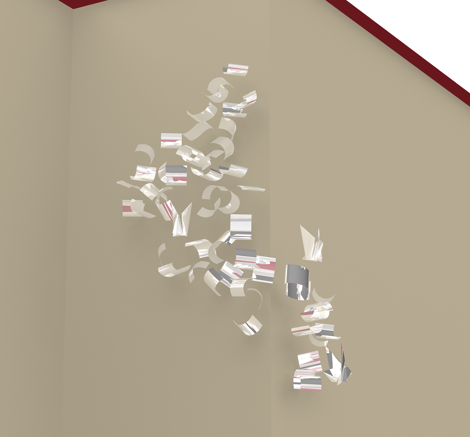 Teos koostuu 100-150 kiiltäväksi hiotusta teräksisestä levystä muodostaen ison pääryhmän ja kaksi pienempää ryhmää kilpailualueelle. Teoksen osat kiinnitetään virastotalon, kaupungintalon ja poliisilaitoksen julkisivuihin.
