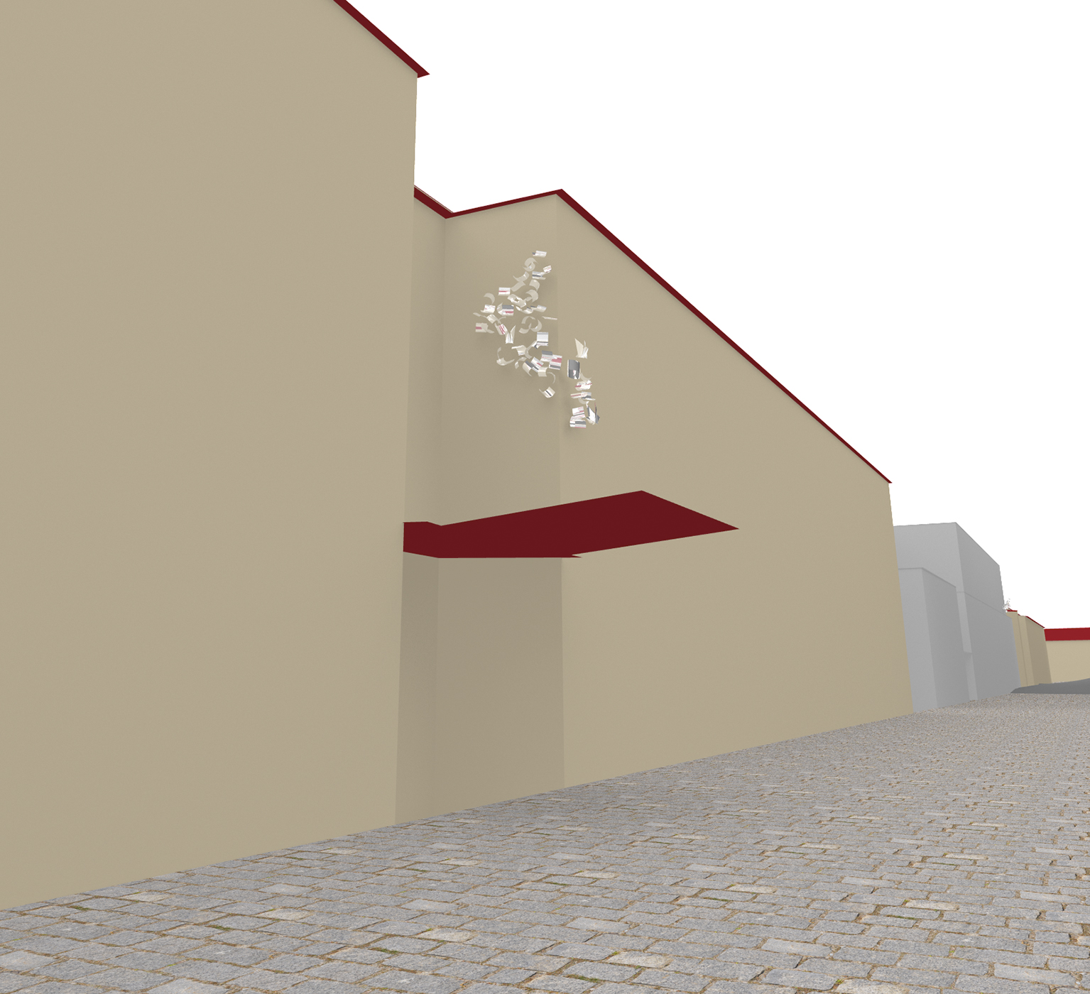 The proposal constitutes on the one hand on papers rotated in the different agencies and on the other hand on a regional bird Thrush Nightingale, Luscinia luscinia. In the piece the core material, papers, undergoes a visual transformation to origami birds that you can twitch amongst the wind blown papers. The sheets of papers spreading from the Lappeenranta government agencies are flowing away by the blowing wind covering the entire Villimies Street (Villimiehenkatu) area. The apparent lightness is however delusive. Many important decisions concerning lots of people are taking place inside the walls of these particular agencies. The decision-making is essentially related to papers and information and constitutively to power, responsibility, liberty and freedom.